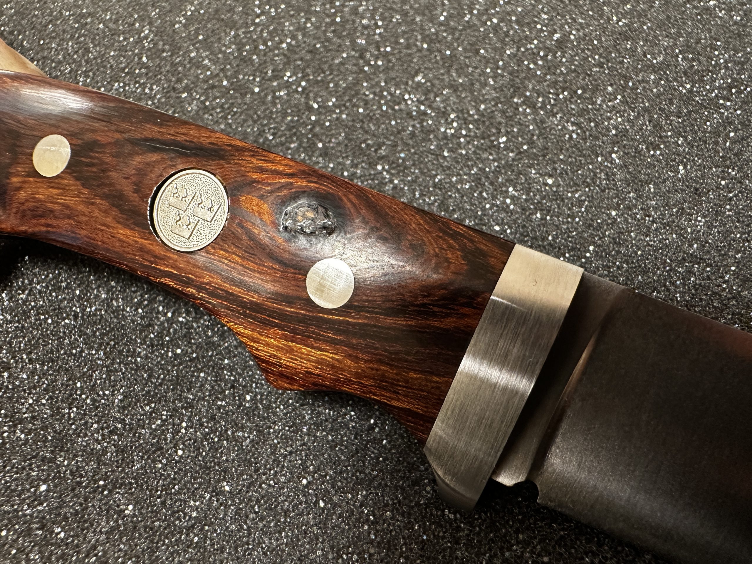 Elmax steel. Desert ironwood handle. Leather sheath.