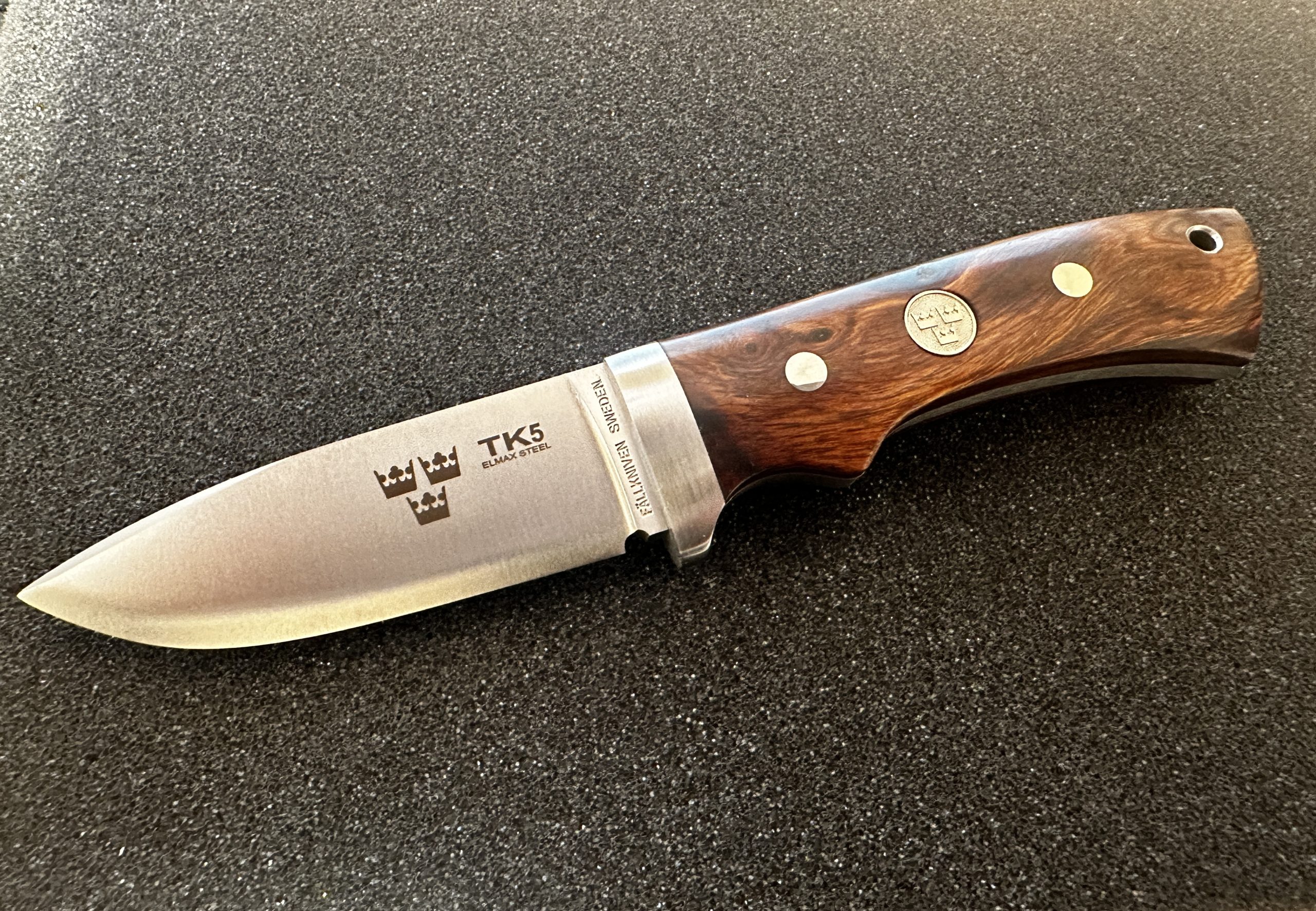 The experienced hunter will certainly like this knife! For clearing a game a knife doesn’t have to be very large but well shaped. A droppoint-blade has got the right design for not cutting through membranes and guts, that is if you know how to put the cut. This three-finger knife will work properly if you place the endbutt into your palm and your fingers over the blade. The TK5 is not the regular woodcarving knife but should be considered as a pure hunting knife. Still many people like the slightly shorter size which for sure will make the TK5 a very popular allroundknife. The wood handle doesn’t need any special care but a drop of furniture cream now and then won’t hurt.